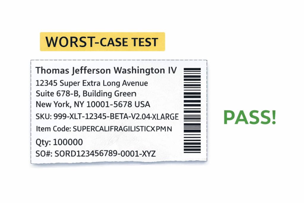 Even a perfectly sized label will fail if variable data grows unexpectedly.